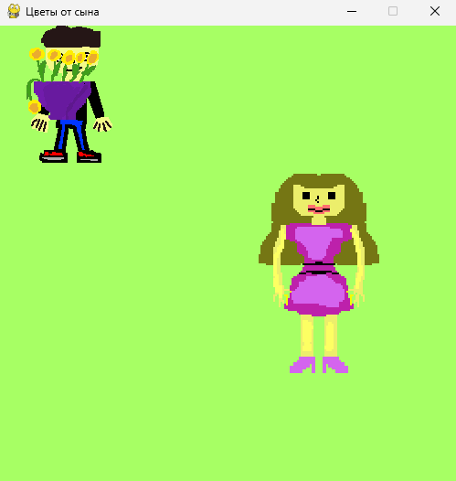 pygame.display.set_caption("Цветы от сына")